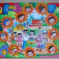 国庆欢乐行儿童画画作品