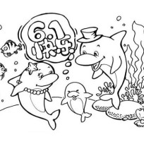 少儿六一快乐卡通简笔画图片:海豚们的六一节